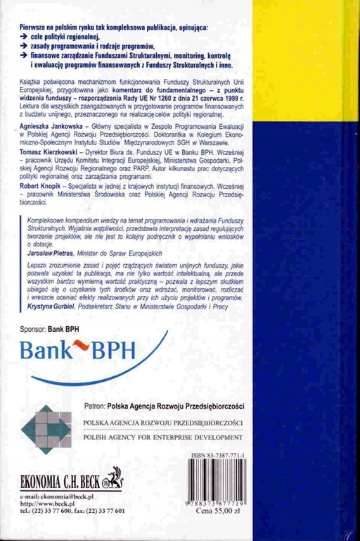 Książka poświęcona mechanizmom funkcjonowania Funduszy Strukturalnych Unii Europejskiej, przygotowana jako komentarz do fundamentalnego ? z punktu widzenia funduszy ? rozporządzenia Rady UE Nr 1260 z dnia 21 czerwca 1999 r. Lektura dla wszystkich zaangażowanych w przygotowanie programów finansowanych z budżetu unijnego, przeznaczonego na realizację celów polityki regionalnej.